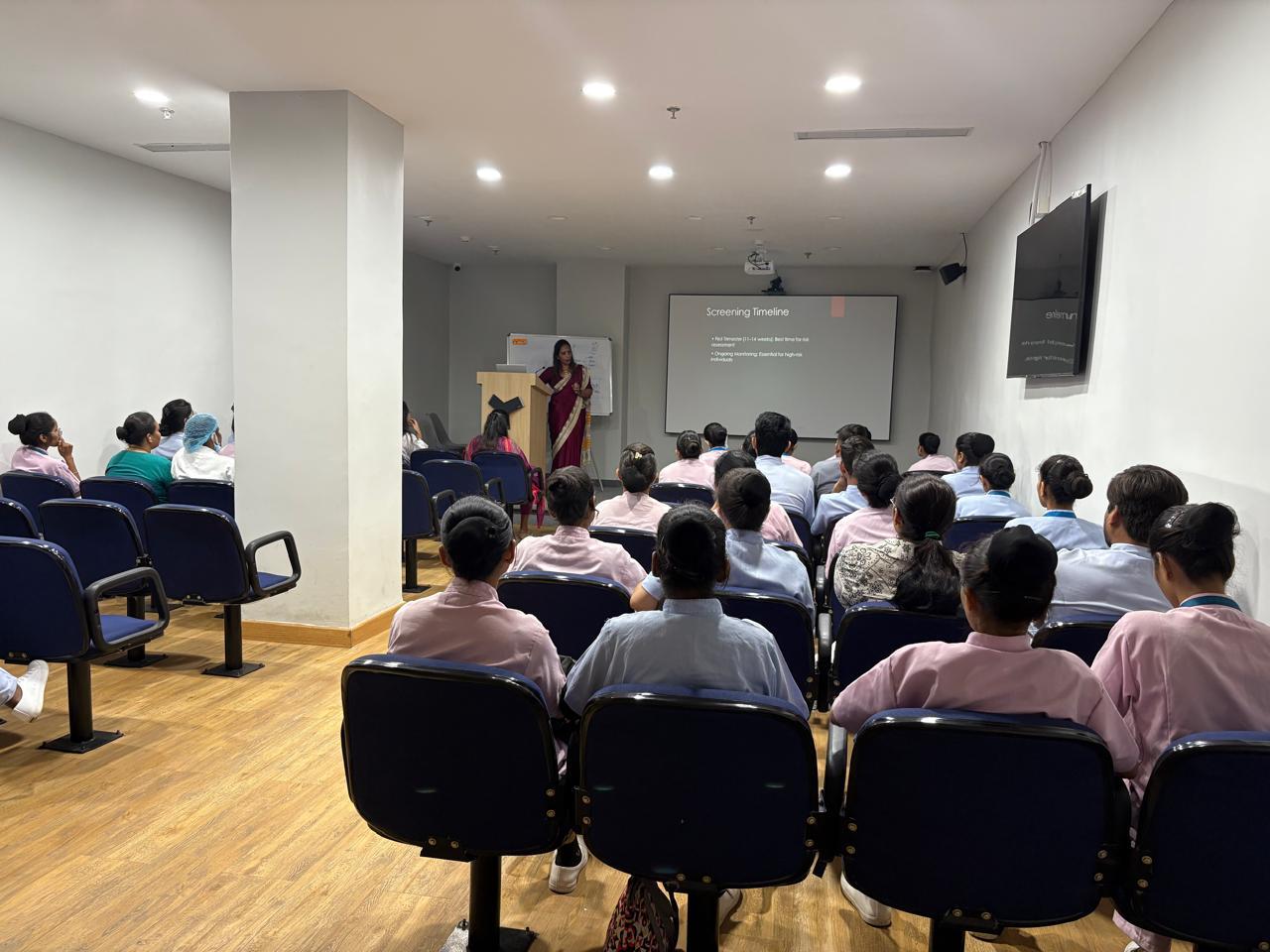 We educated the female staff ,and patients about osteoporosis, under the banner of IRIA, and in collaboration with sri aurobindo institute of medical sciences indore, in dept of Radiodiagnosis, on 8th March 2025. we did dexa scans for females in 50% rates than the usual, usg and mammography of female patients free of cost.wore white color as representation of osteoporosis awareness.also distributed calcium and vit d to the females, after the talk, for spreading awareness regarding osteoporosis.
